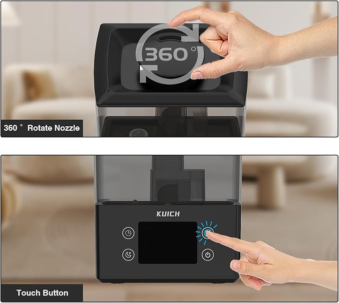 - 【Adjustable Mist Levels and Timer Function】- Customize your experience with high, medium, and low mist levels, as well as an automatic mode. The maximum mist output reaches 240 ml/hour. The automatic mode adjusts mist output based on the built-in humidity sensor, maintaining optimal humidity levels. The timer mode allows you to set operation times from 1 to 12 hours, providing control according to your schedule. The 360-degree nozzle enables flexible mist direction adjustment for comprehensive control.