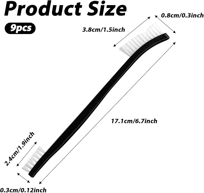 - 【What You Get】You will get 9 double-headed brushes, a large brush head of 1.3 cm/0.51 inches, a small brush head of 0.7 cm/0.27 inches, and two sizes of brush heads to cover every corner, ensuring an efficient and unobstructed cleaning experience