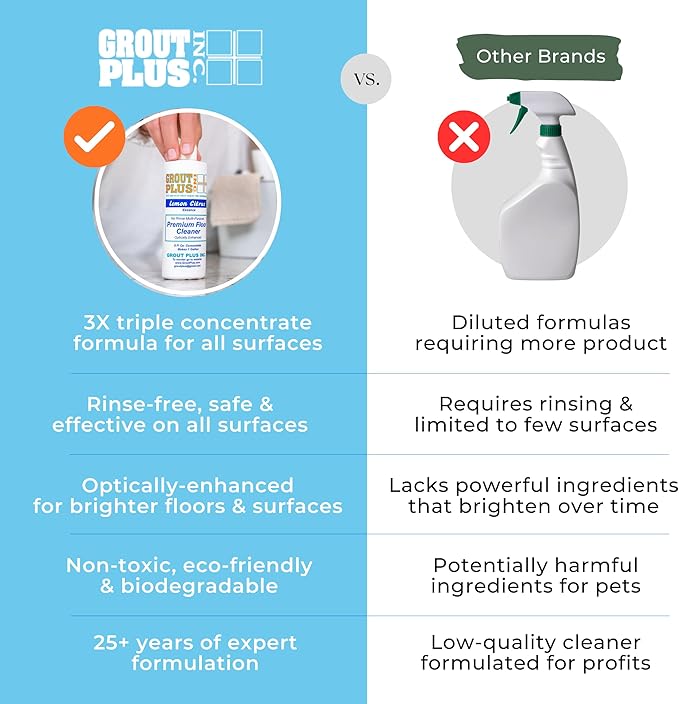 - FORMULATED BY CLEANING GURUS SINCE '03 - When it comes to floors, Grout Plus is the real deal. This family-owned biz has been tackling tile, grout, surface restoration, and cleaning products since way before it was cool. Over 25 years of insider know-how and custom formulas are bottled up in this top-notch multi-surface cleaner and floor cleaner for results that truly rock. This home cleaning essential is an all-in-one must-have, replacing your hard surface, floor, tile, and grout cleaner!