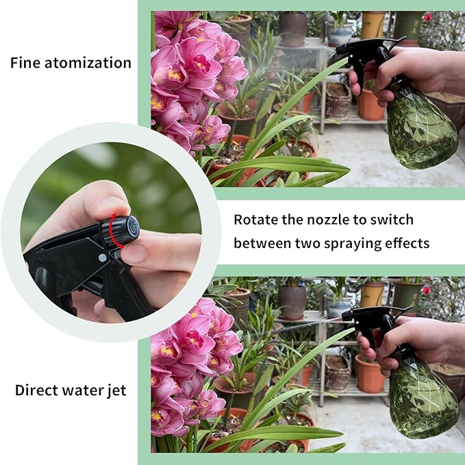 2 Pcs Spray Bottles, 500 ml/17 oz Empty Water Spray Bottles, Plastic Reusable Adjustable Mist Sprayer Squirt Bottles Containers Refillable for Cleaning Solutions, Gardening, Plants (Green)