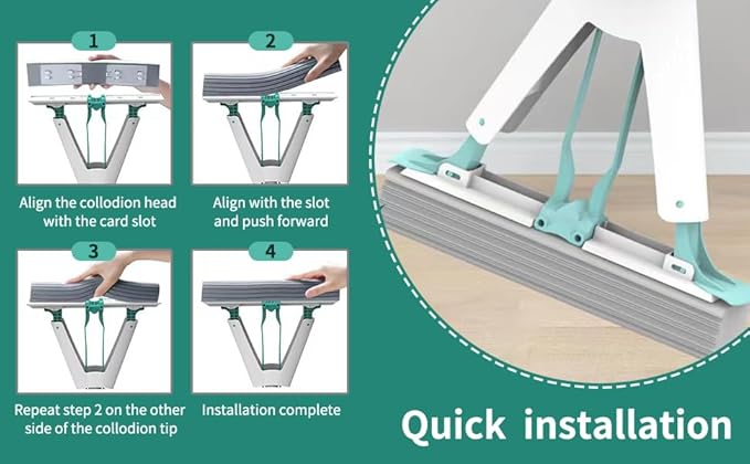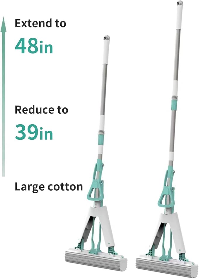 - SUPER ABSORBENT SPONGE HEAD: Made with high-quality sponge material, it absorbs water strongly and cleans stains effortlessly. Suitable for various floor types such as wood, marble, and tiles, ensuring excellent cleaning results.