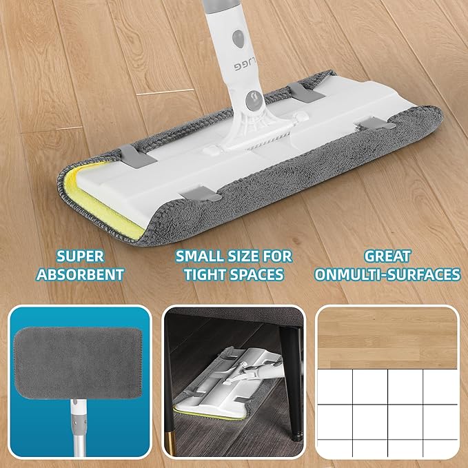 - Hands-Free Easy Clean – Pads attach securely and release quickly for washing; compact flat mop saves storage space.