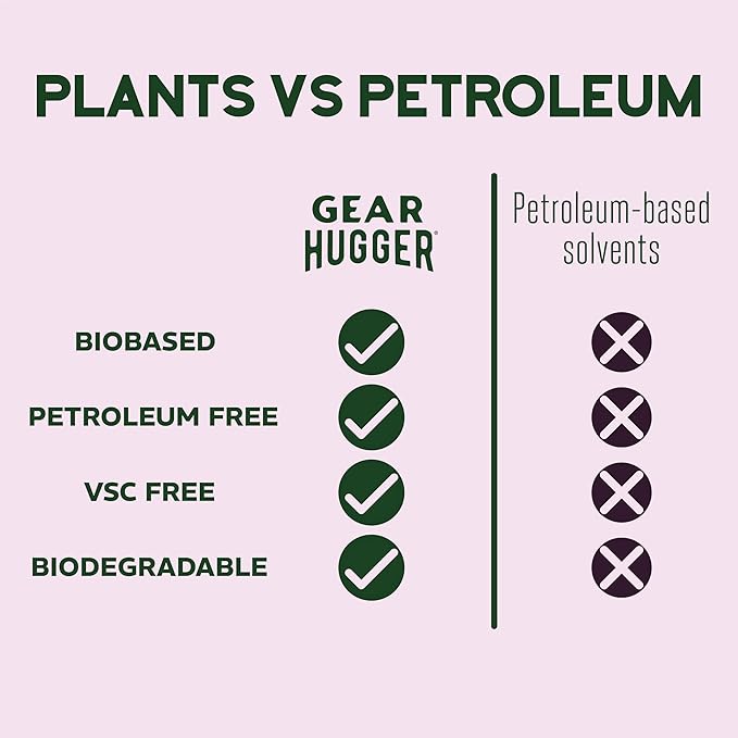 - ENVIRONMENTALLY FRIENDLY DEGREASER - Gear Hugger is created with upcycled waste from the production of tequila as a source for agave plants rich in saponins, which produce foam to clear surfaces without harming the environment. The natural, biodegradable solvents replace harmful petroleum and PTFE chemicals for a water-based formula that’s USDA Certified 96% bio-based. Make an eco-friendly choice to ensure all your gear functions optimally, lasts longer and stays out of the landfill.