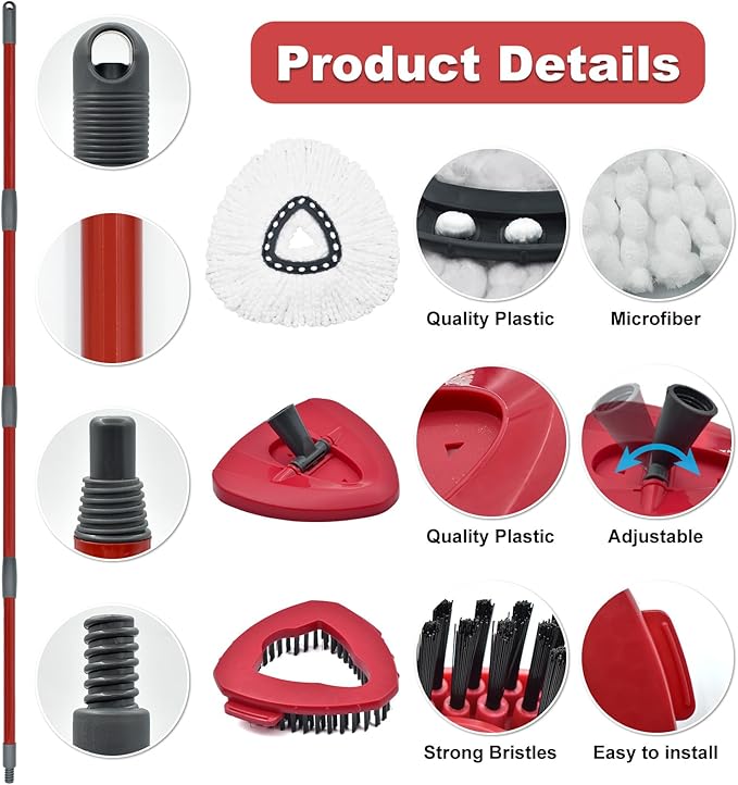 - Perfect Compatibility: The Mop Replace Head mop handle mop base set compatible with Ocedar EasyWring Spin Mop. This mop head replacements set delivers outstanding cleaning performance, working just as effectively as the original for a spotless, streak-free finish every time.