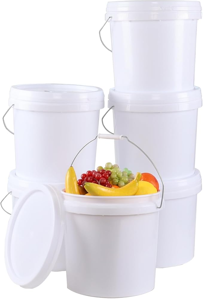 Farmoon 6 Packs 4 Gallon Food Grade Sealable Bucket, White Round Storage Bucket with Lid