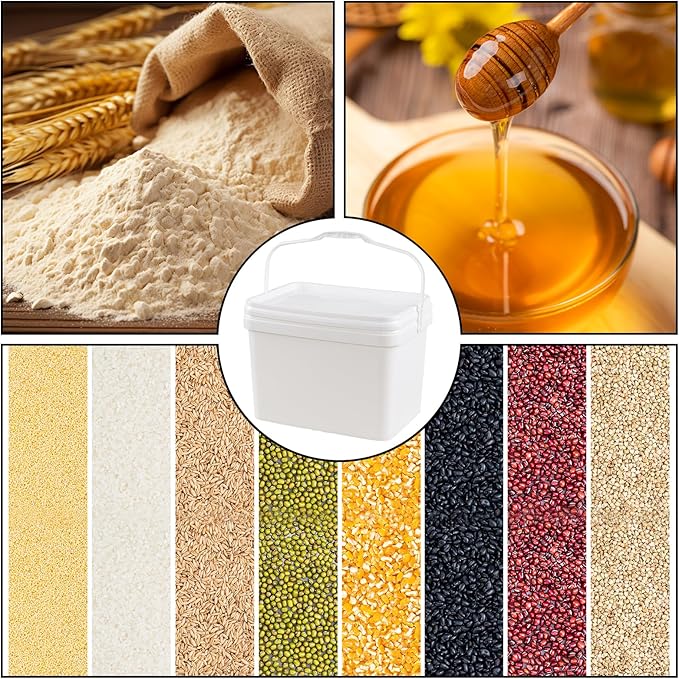 5 Gallon Plastic Square Bucket with Lid for Food Storage, Set of 4 Rectangular White Food Grade Bucket with Handle