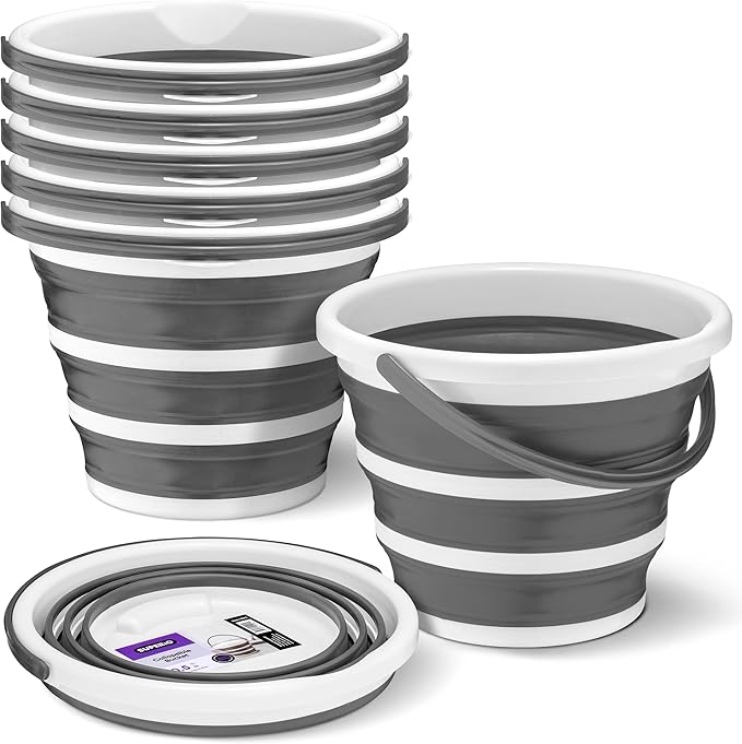 Superio Collapsible Bucket 2 Gallon Bucket with Handle Grey Car Wash Bucket Small Foldable Silicone Pail for Camping, Fishing, Cleaning, Mopping, 10 Liter, 6