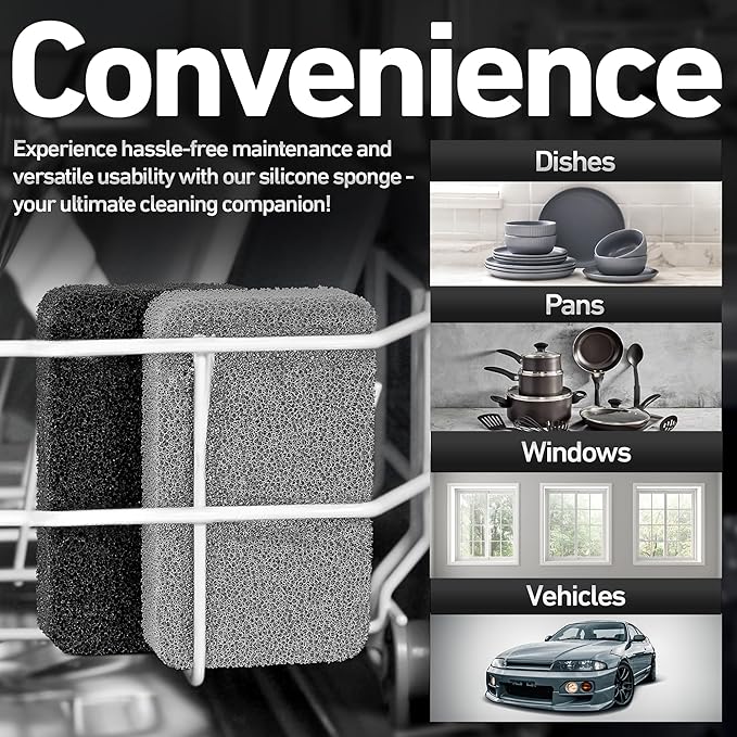- Easy to Clean: Simply rinse, sanitize in the dishwasher, and reuse. No more gross, stinky sponges!
