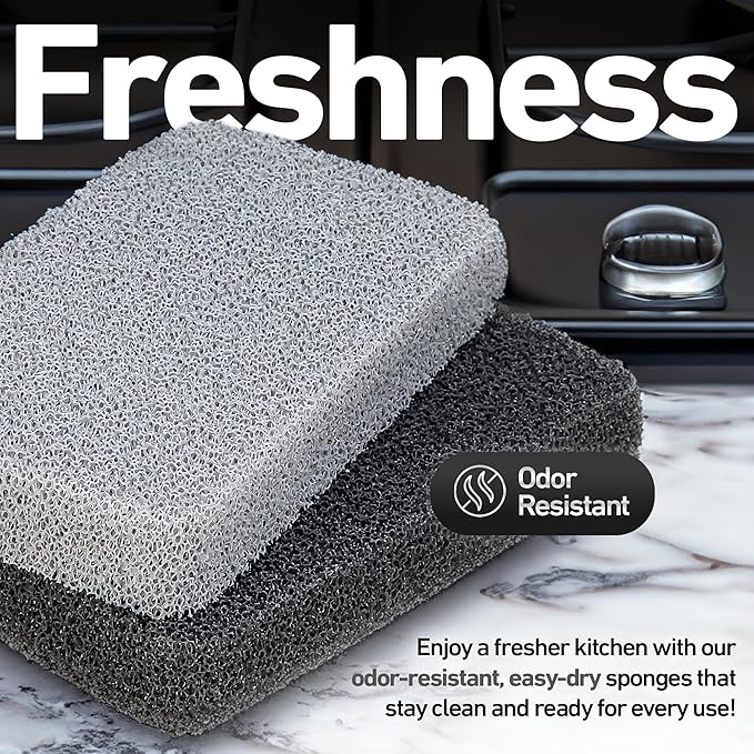 - Odor-Resistant: Keep your kitchen smelling fresh with sponges that resist odor buildup.