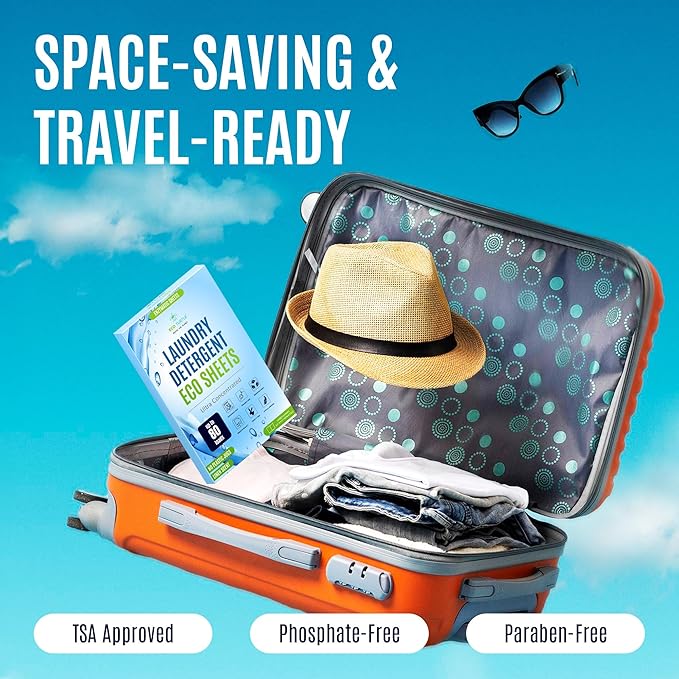 Eco-Friendly 80 Loads Ultra Concentrated Laundry Detergent Sheets Stain-Fighting Enzymes & Plant Powered, Washer Sheets, Space Saving, Travel Friendly for Hot/Cold Cycles, Tackles Tough Stains & Odors