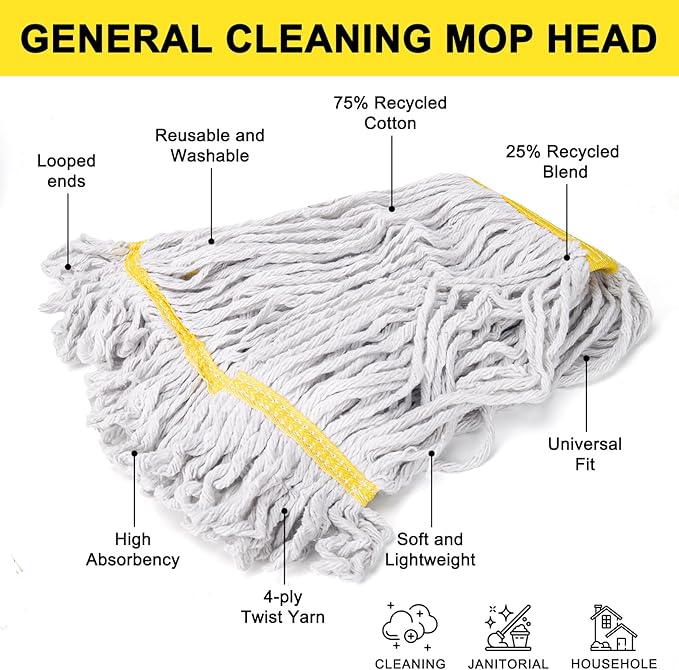 - ⭐High Quality Material - Our mop head replacements are made from cotton and blended fibers. This provides an ideal balance of performance, durability, and appearance. This commercial mop head has excellent strength and absorbency for effective cleaning and drying of floors.