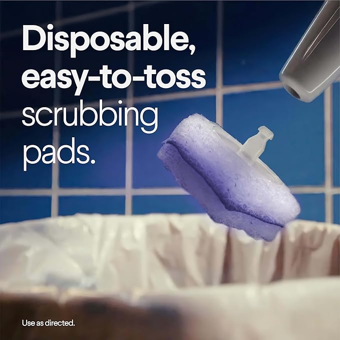 - DISPOSABLE SCRUBBING PADS: Never touch an icky toilet brush again with disposable scrubbing pads that conveniently pop off into the trash so you can toss the mess every time