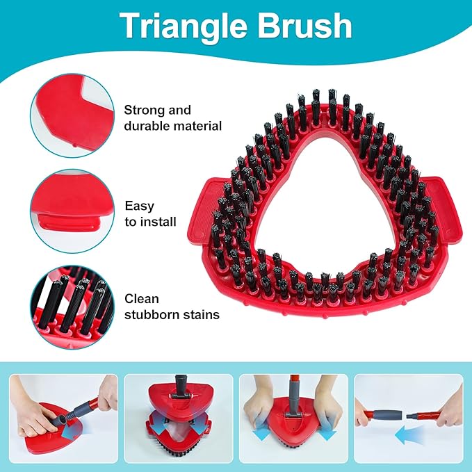 - TRIANGLE MOP BASE/SCRUBBER MOP HEAD: Designed with a rounded triangle shape, this mop head ensures your furniture stays protected while cleaning. The scrubber mop head reaches into tight spaces, grout lines, and hard-to-reach areas, making it good for cleaning tubs, tiles, around toilets, decking, and tough dirt on floor tiles.