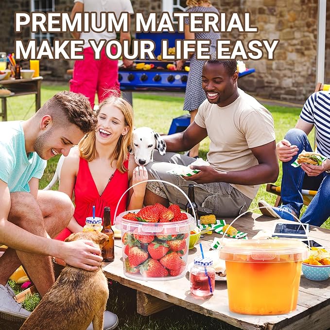 10 Pack 1 Gallon Plastic Bucket with Handle and Lid Food Storage Bucket Containers All Purpose Pail for Multipurpose Paint Water Art Crafts Projects Garage Organization (1 Gallon Transparent)