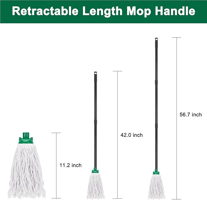 - 🌴Fine Absorbent Mop Heads: The soft, absorbent strings will not scratch the floor surface.Attract dirt, dust and hair, for both wet and dry use.