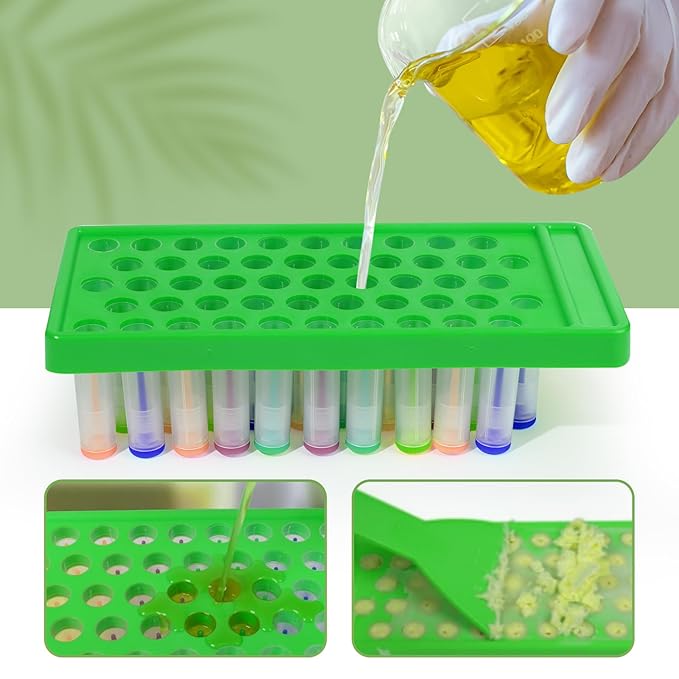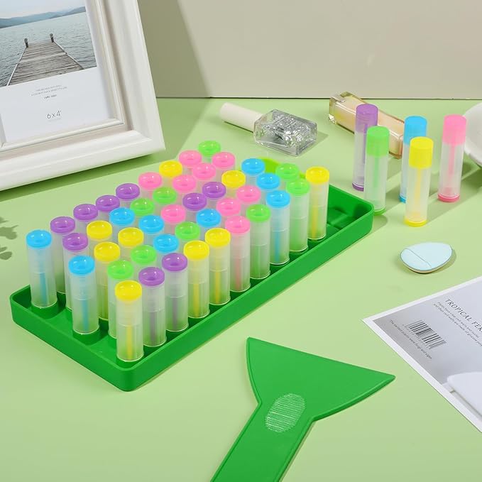 - How to Use: The Lip Balm Crafting Kit also includes an easy to use Filling Tray and Spatula. Simply insert all 50 empty Lip Balm Tubes into the Filling Tray and start pouring. Use the Spatula to spread your lip balm mixture evenly. Let it dry and you're done.