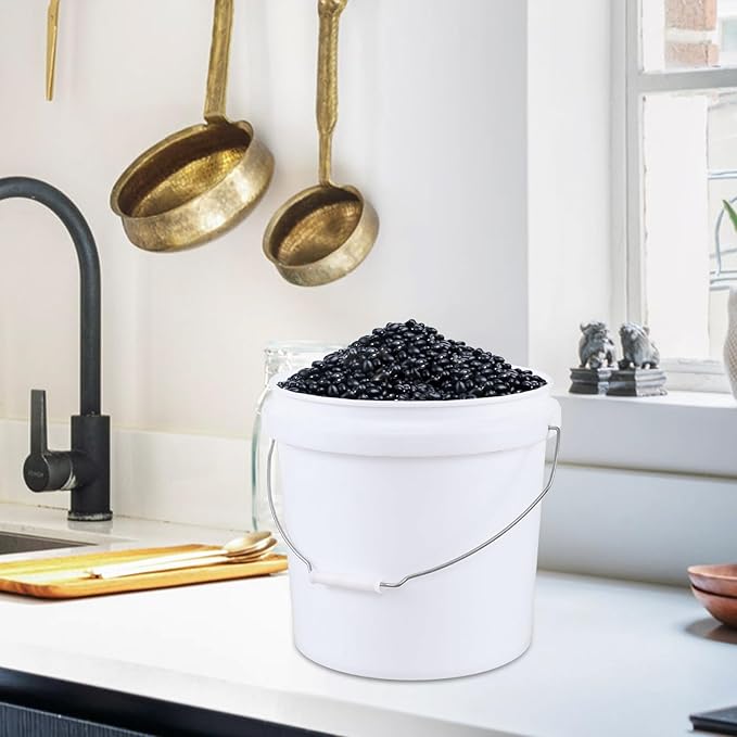 - 4 gallon round buckets are made of food grade plastic, sturdy and thick, top diameter: 11.73", bottom diameter: 10.24", height: 11.69"