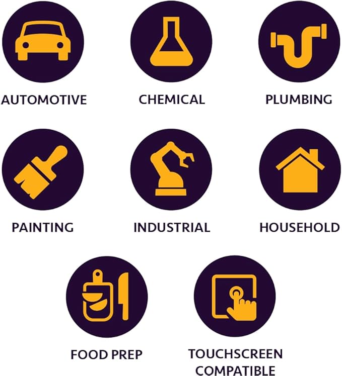 - MULTIPURPOSE & TOUCHSCREEN FRIENDLY: Designed for versatility—perfect disposable gloves for food handling, cleaning, tattooing, automotive work, and more. Textured fingertips ensure a secure grip, while touchscreen compatibility adds modern convenience. Latex-free for reduced risk of allergic reactions.