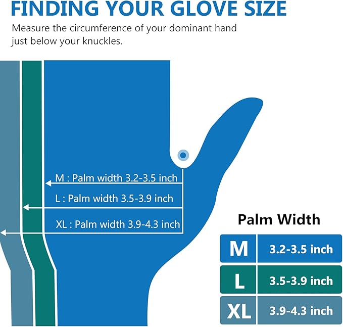 - Available in Large Size: These powder free exam gloves are 9” long, can be worn on either the right or left hand, and fit men and women equally. These disposable gloves come in sizes Medium, Large and X-Large so that you can find your perfect fit.