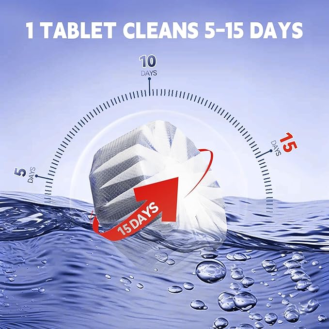 - Easy to Use: Simply place a piece of toilet tank cleaner tablet into the tank (away from the spout and inlet) and let it fully dissolve for at least 30 minutes;(Please note, do not remove the water-soluble transparent protective film)