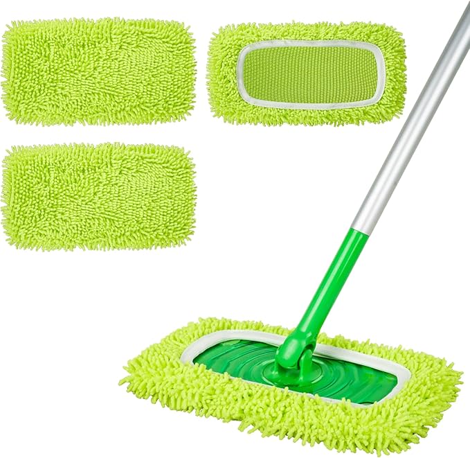 - High Quality Mop Pads Refills: Our dry sweeping cloths is Made of 100% Chenille. The Chenille Mop Pads With Maximum water absorption and cleaning effect, good to pick up the pet hair, grease, juice, dust, debris and and stubborn dirt. Bring your floor bright as new