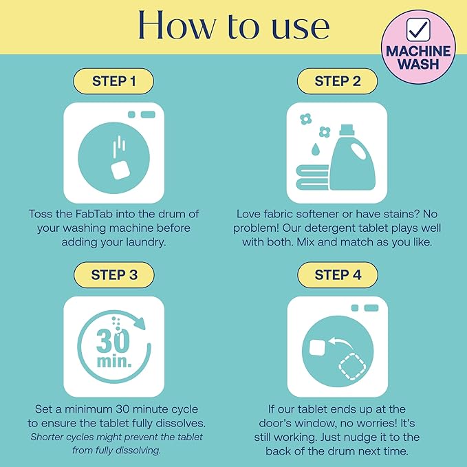 - Powerful Cleaning: Our FabTab laundry tablets deliver fast-acting clean performance, removing dirt and grime effectively; an excellent alternative to traditional laundry pods and detergent sheets
