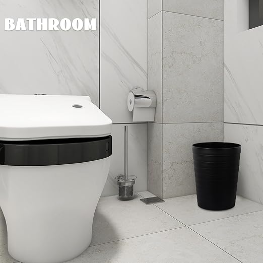 UUJOLY Small Bathroom Trash Can Wastebasket, Plastic Garbage Bin Container Basket for Bathrooms, Laundry Room, Kitchens, Offices, Kids Rooms, Dorms, Black, 1.8 Gallon
