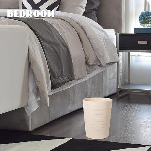 UUJOLY Small Bathroom Trash Can Wastebasket, Plastic Garbage Bin Container Basket for Bathrooms, Laundry Room, Kitchens, Offices, Kids Rooms, Dorms, Beige, 1.8 Gallon