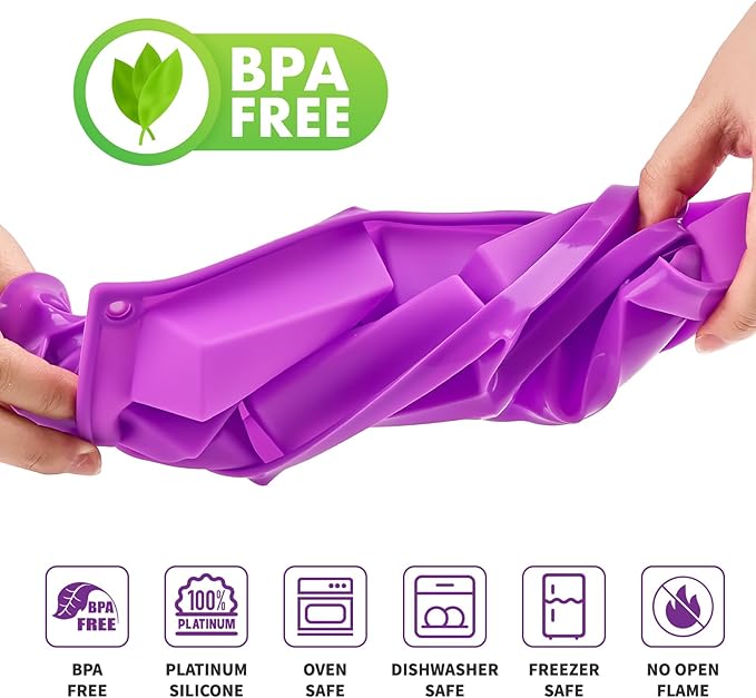 - Suitable Size: You will get 2pcs dark purple silicone protein bar molds with 12 cavities, measuring 11.6” L x 6.7” W x 1.1” H, with each cavity measuring 3.1” L x 1.2” W x 1.1” H