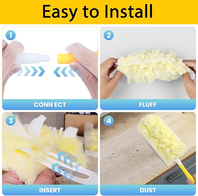 - [New Upgraded] The handle is made of food-grade biodegradable polypropylene. The duster refill is made of high-quality fiber material with strong electrostatic adsorption function.
