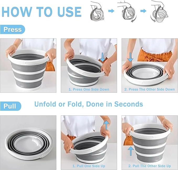 - Versatile Essential for Various Uses: Whether it's for RV,garden watering, drink cooler, car washing, camping, or fishing, ice buckets for parties, this 2-pack of collapsible buckets meets all your needs! Say goodbye to multiple containers; one set does it all, making daily chores and outdoor adventures more convenient.
