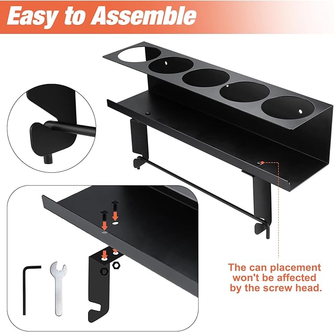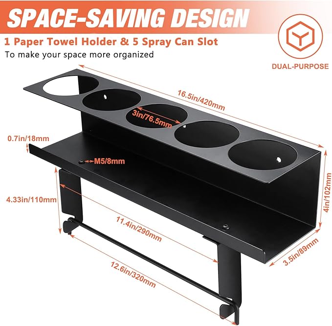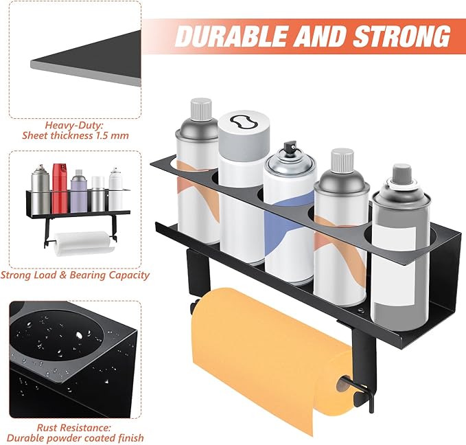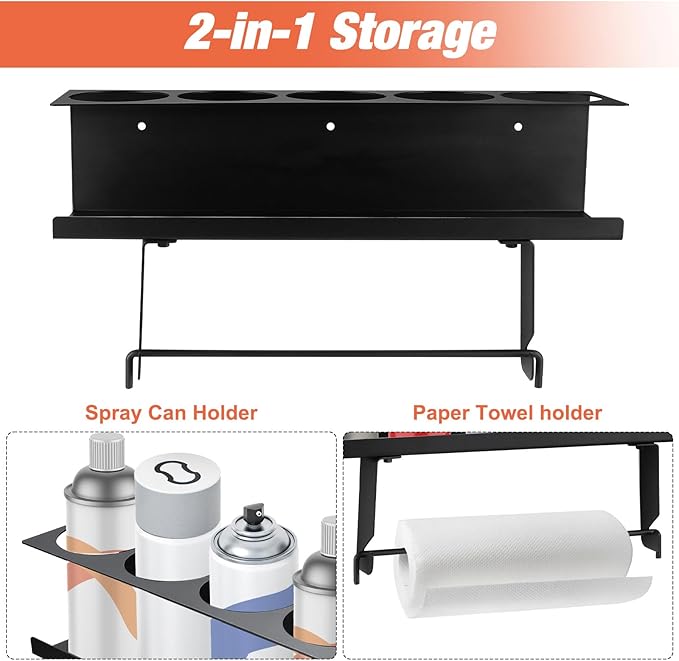 - 2-IN-1 Storage: Versatile spray can holder combines with paper towel holder for easy access to cans and towels. Perfect for garages, workshops, homes, and tool trailers.