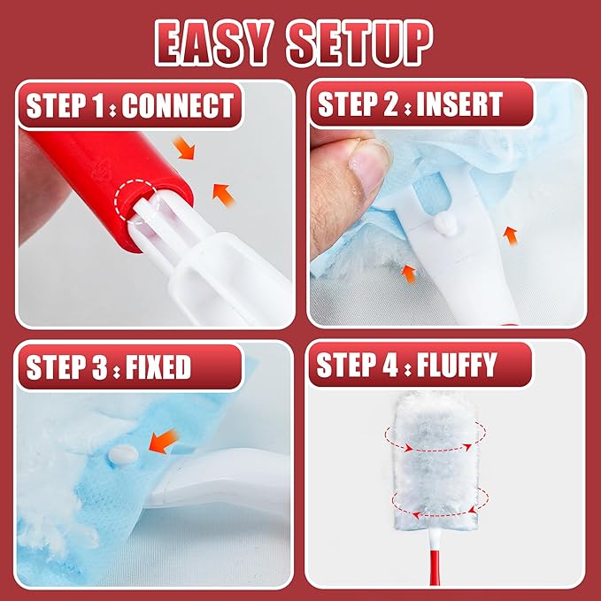 - Duster for Cleaning: Featuring 5X more coated microfibers and a 360° all-round design, the duster generates greater static to gather more dust in one sweep. It ensures thorough cleaning, covering every corner and minimizing the need for repeated efforts