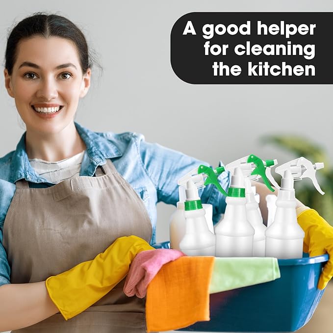 Eccliy 12 Pcs 16 Oz Plastic Spray Bottle, Adjustable Empty Reusable Sprayer for Cleaning, Planting, Water, Bathroom and Kitchen, BBQ, Commercial and Residential(Green, White,Original)