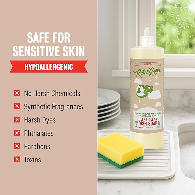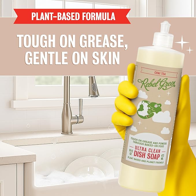 Rebel Green Super Deluxe Dish Soap - Natural Dishwashing Soap - Liquid Dish Detergent - Sustainable Dish Liquid Scented with Chai Tea - (16 oz Bottles, 2 Pack)