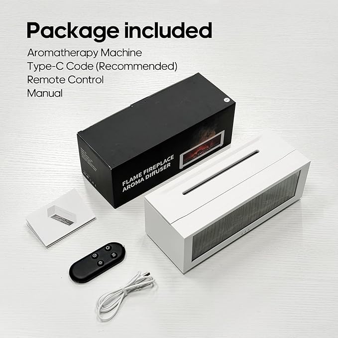 - Ultrasonic Fireplace Diffuser: It combines ultrasonic atomization technology, converts water and essential oils into tiny clusters of molecules to create the vapor. When using the diffuser, add 3-5 drops of your favorite essential oil, and the fragrance will fill with the room. Also it can help your relax nerves and relieve fatigue