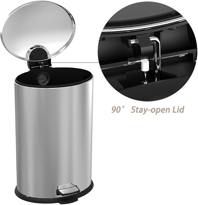 - ใ๐๐๐ฌ๐ฒ & ๐๐ฎ๐ข๐๐ญ ๐๐ฉ๐๐ซ๐๐ญ๐ข๐จ๐งใEasy to use, it features a hands-free foot pedal, a smooth soft-close mechanism to prevent noise, and a lid that opens to a full 90 degrees