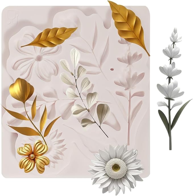 1 Pcs Flower Fondant Mold for Cake Decoration, Leaf Chocolate Silicone Mold, Exquisite Flower and Leaf Shape is Perfect for Wedding Desserts, Candy, Sugar Craft, Gum, Resin, Clay