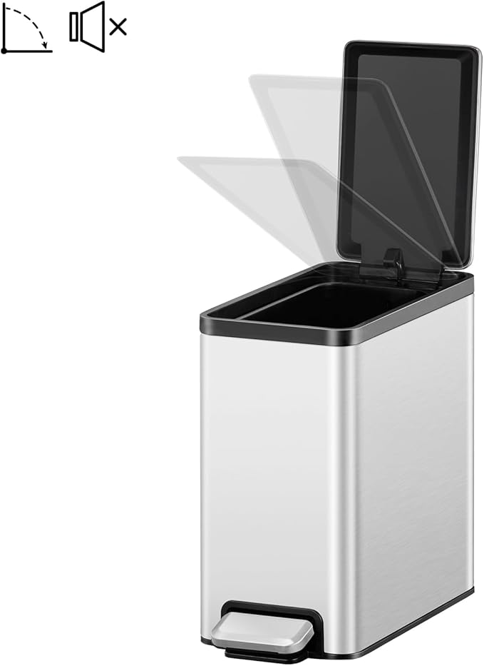 EKO Slim Small Bathroom Trash Can with Lid, Stainless Steel Small Garbage Can with Removable Inner Bucket, 6L / 1.6 Gal, Step On Trash Bin