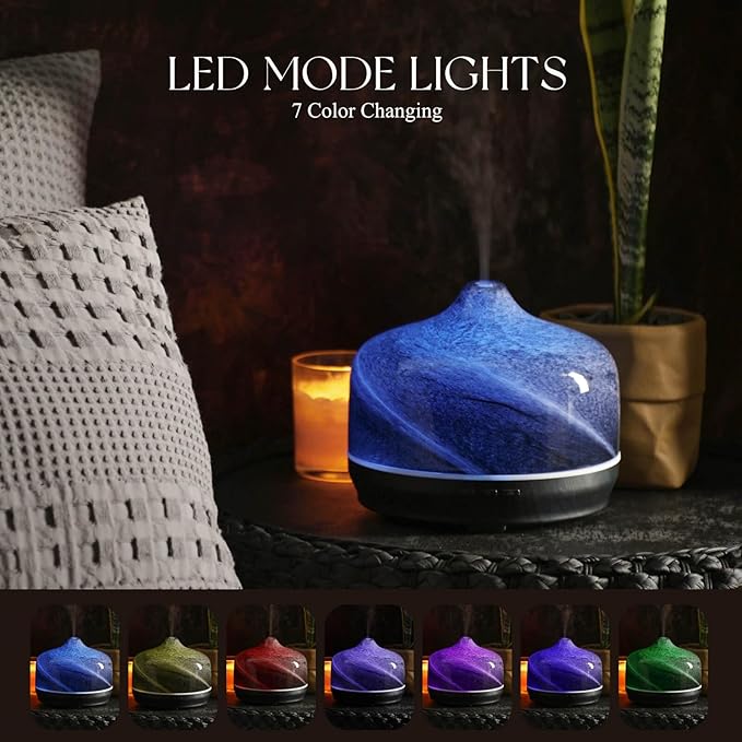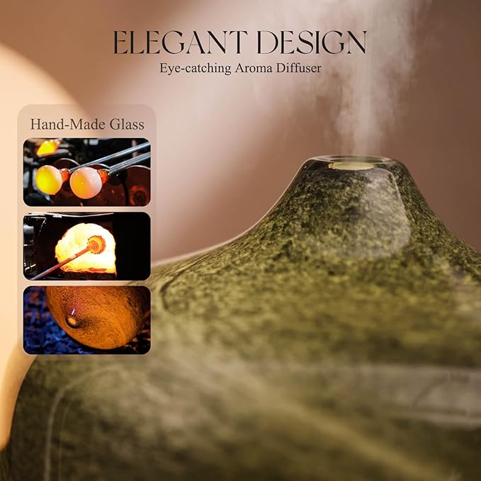 - UNIQUE ART DECOR - 500ml glass essential oil diffuser with star-shaped glass cover & wood grain base. Adds artistic harmony to your living space, perfect for bedrooms, living rooms, kids' rooms, studies, offices, & yoga studios. Enhances ambience