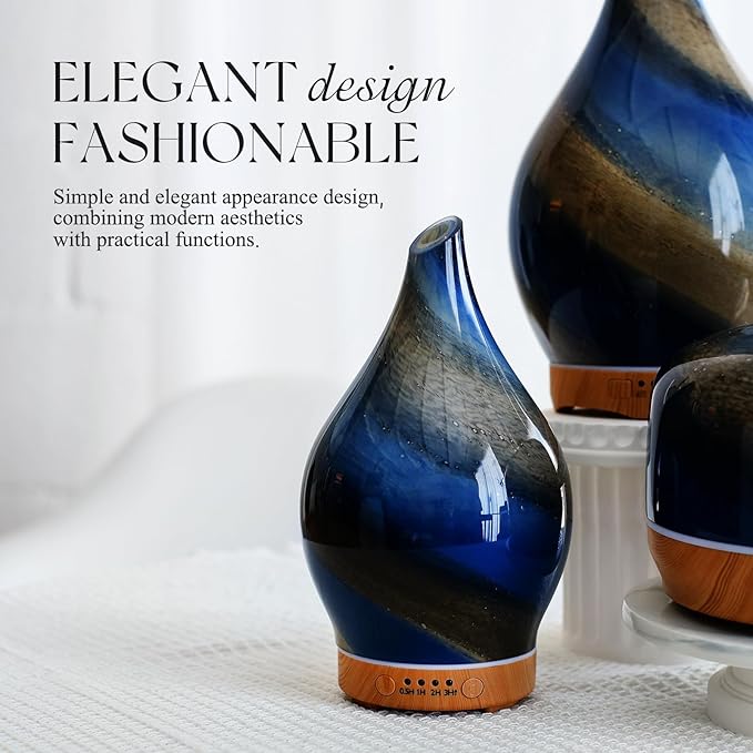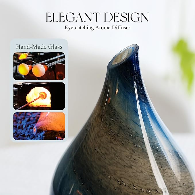 - UNIQUE ART DECOR - 150ml glass essential oil diffuser with star-shaped glass cover & wood grain base. Adds artistic harmony to your living space, perfect for bedrooms, living rooms, kids' rooms, studies, offices, & yoga studios. Enhances ambience