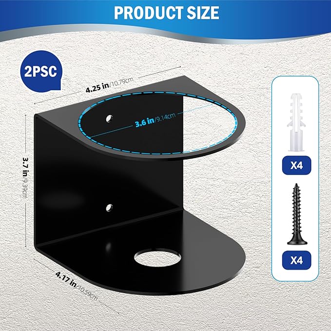 - High Quality Material: These wall mount cup holders are made of high quality cold rolled steel, which has the characteristics of high strength, strong load-bearing capacity and not easy to deform. The spray can organizer is powder coated on the surface to prevent rust and corrosion, easy to clean, suitable for all weather conditions and long service life.