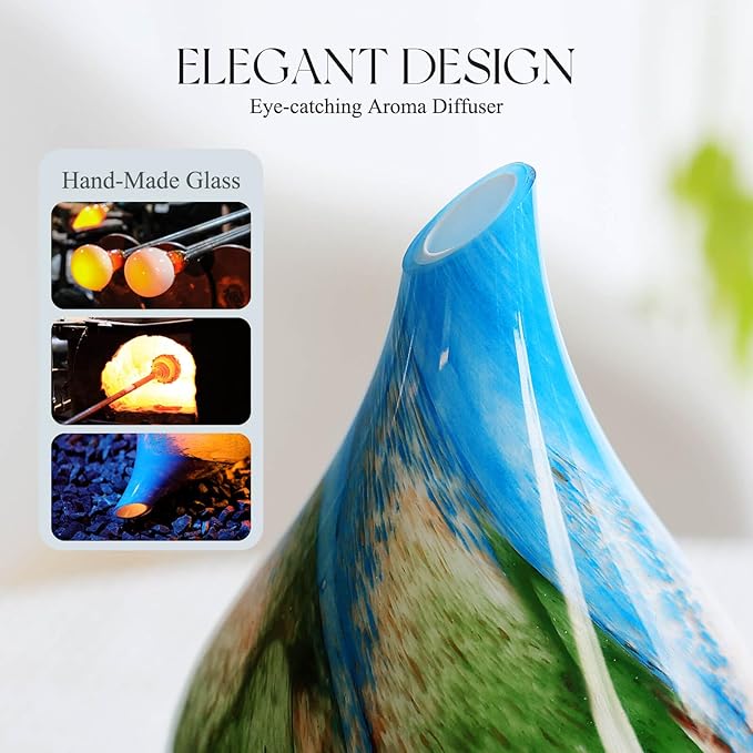 - UNIQUE ART DECOR - 150ml glass essential oil diffuser with star-shaped glass cover & wood grain base. Adds artistic harmony to your living space, perfect for bedrooms, living rooms, kids' rooms, studies, offices, & yoga studios. Enhances ambience