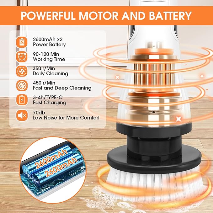 - 【Convenient and Efficient & more labor-saving】This electric scrubber for cleaning is designed to make your cleaning tasks easier and more efficient.It's perfect for bathroom scrubber. This floor scrubber machine for cleaning various surfaces,including toilets,showers,windows,tiles,floor and more"