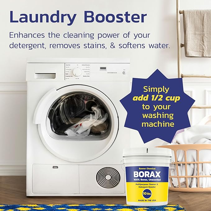 Raw Borax (10 lbs) - 100% Pure, Unscented, Multi-Purpose Cleaner & Detergent Booster - Natural Household Cleaner and Stain Remover - Made in the USA
