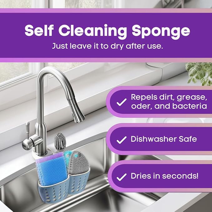- Kinder to the planet - and safer for your family. Did you know that when a sponge starts to smell, it means millions of tiny and potentially dangerous microbes are trapped in it? That's why we've made our durable, BPA-free silicone dish scrubber sponges dishwasher-safe - so you can easily eliminate all of that.