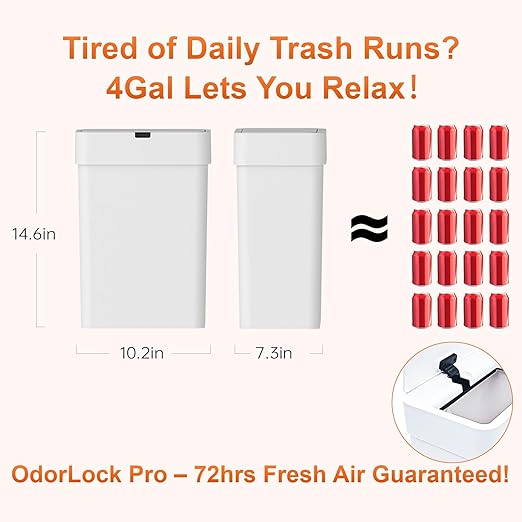 - Convenient Power Supply and Genuine Capacity: The power supply is simple, requiring just two AA batteries. The genuine 4 gallon capacity ensures the trash can meets cleaning needs in various scenarios, easily handling waste in living rooms, kitchens, bathrooms.