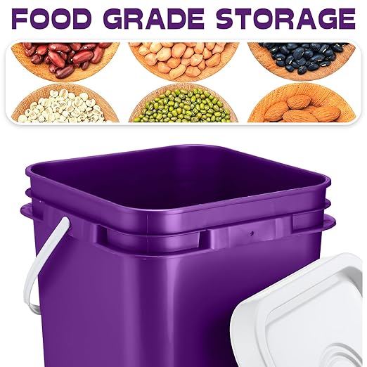 - Versatile Usage: there are 6 pieces of bucket pails, made of durable plastic, safe for you to use with confidence; The purple 5 gallon bucket is suitable for storing various items like beans, rice, flour, sugar, salt, pasta, honey and more