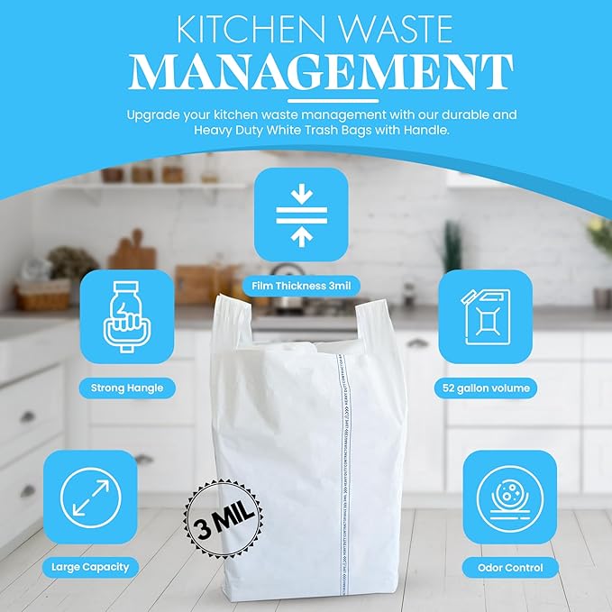 - Convenient Handles for Easy Lifting: Features sturdy, reinforced handles for easy lifting and carrying. Unlike many heavy-duty bags, our trash bags with handles make disposal simple, secure, and hassle-free.