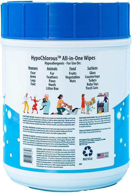 - BLEACH-FREE FORMULA: Our bleach free wipes are also alcohol-free, making them a top choice for non toxic cleaning wipes needs. A hocl wipes solution that’s safe for food-prep areas, pets, and children.